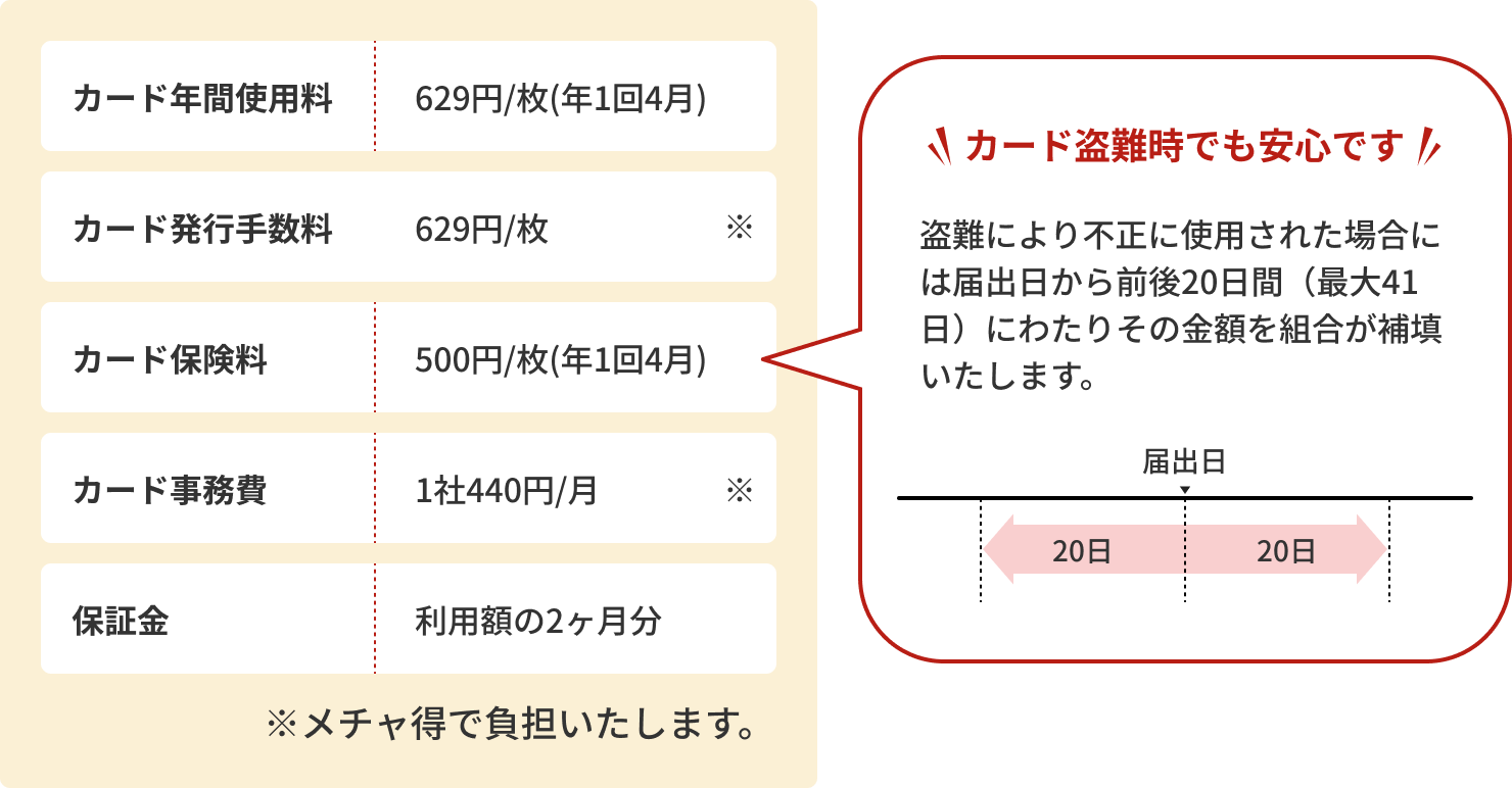 カードご利用にあたり以下手数料がかかります。
